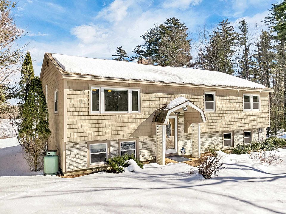 OPEN HOUSE CANCELED..Lakefront Paradise on Shell Camp Pond – 110 Feet of Private Shoreline! Escape to your own waterfront retreat on Shell Camp Pond in Gilmanton, NH! This sunny three-bedroom, 2.5-bath split-entry home sits on 1.54 acres and boasts 110 feet of private shorefront with a deeded sandy beach just steps away. Perfect for relaxing on your sundrenched waterside deck..listen to ducks & loons. Enjoy fantastic fishing for largemouth bass, pickerel, and perch, or take advantage of the public boat launch for effortless days on the water. Whether you prefer kayaking, canoeing, sailing, pontoon cruising, or jet skiing, this property offers endless outdoor enjoyment. Inside, you'll find a newly remodeled kitchen and bathrooms, a spacious family room, and a bonus room for extra flexibility. Newer vinyl windows, vinyl siding, and a roof updated 10 years ago ensure peace of mind, while the two-car garage provides ample storage for vehicles and gear. Also includes a Rhino car or boat shelter. Don’t miss this rare opportunity to own a waterfront gem for $625,000! Schedule your private showing today and start making memories by the lak