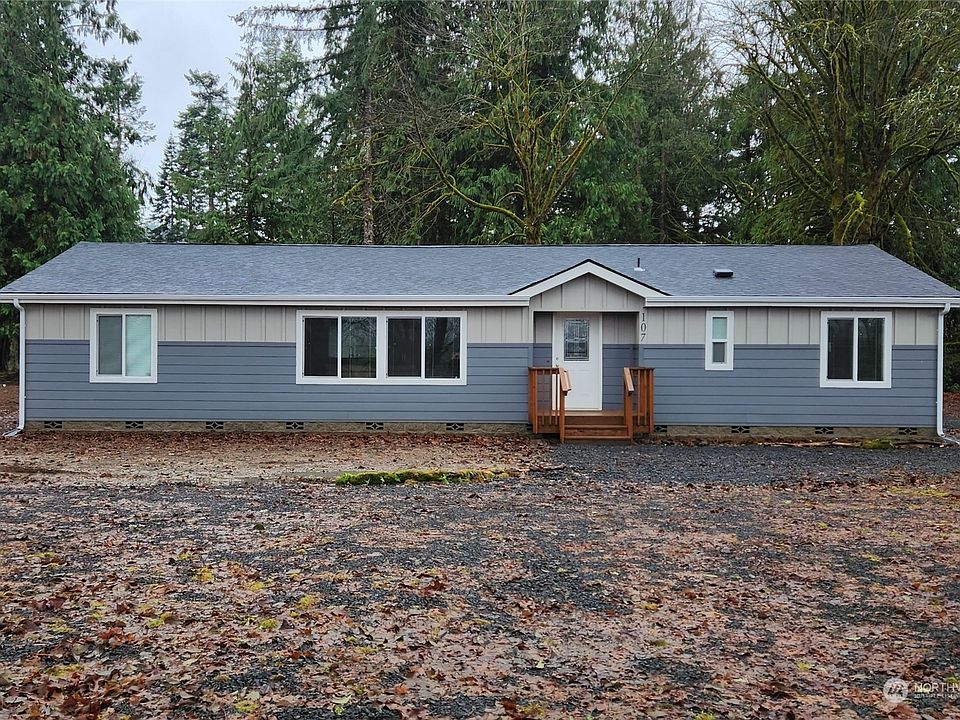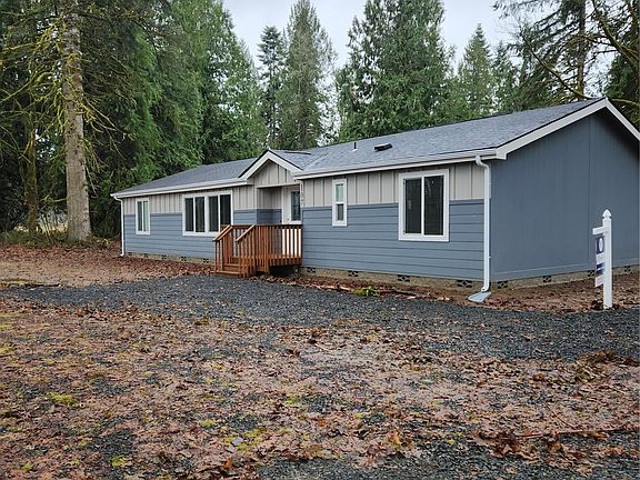 Secluded 5 acres with a new 2023 Skyline manufactured home, two driveway accesses to the property, 3 bed/2 bath, 1605 sq. ft., no HOA, open concept with a spacious kitchen, beautiful stainless steel appliances, plenty of cabinets w/pantry, and large island open to the dining room and living room, a large utility room, two spacious guest bedrooms with walk-in closets, and primary bedroom with a large walk-in closet, two sinks, walk-in shower, and enclosed closet for the toilet. Perfect home with privacy and wonderful oak trees and peaceful surrounding farms. Minutes from the Oak Meadows Buffalo Ranch, 19 minutes from Lucky Eagle Casino, 38 minutes to Olympia and 1 hour to Ocean Shores. Be sure to come view, this won't last long!