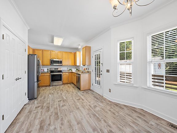 Welcome to a beautifully maintained home situated on a desirable corner lot in a quiet cul-de-sac in Garner! Enjoy peaceful mornings on the inviting front sitting porch and entertain with ease on the expansive back deck overlooking a fully fenced backyard with a storage shed. Inside, the home boasts a bright open floor plan with soaring vaulted ceilings, creating a spacious feel. The kitchen features granite countertops, a pantry, and a charming breakfast table space, all flowing seamlessly into the main living areas. Hosting is a breeze in the separate dining room with elegant wainscoting. Retreat to the first-floor primary suite, complete with vaulted ceilings, a luxurious bath offering a soaking tub, separate shower, dual vanities, and a walk-in closet. Upstairs, you'll find ample storage, including a walk-in floored attic, a dual vanity guest bathroom and 3 additional bedrooms or use the larger 4th room as a bonus space, perfect for family or visitors. All of this just minutes from Downtown Raleigh, parks, and shopping — this home truly has it all!