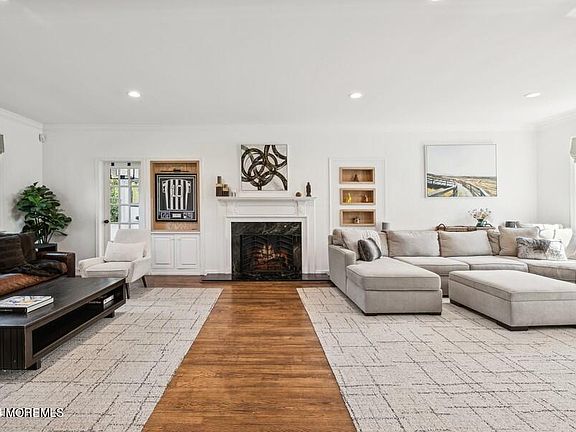 Discover this exceptional Rumson colonial perfectly situated on 1.5 acres adjacent to a tranquil nature preserve. This impeccably maintained colonial home offers a seamless blend of sophisticated living and natural beauty. With 5 bedrooms, 4 full baths, and two half baths, and a 4 car garage, it provides ample space for comfort and privacy. A spacious kitchen featuring modern stainless-steel appliances, alongside multiple living areas including a family room, living room, and sun-drenched sunroom. The dining room is perfect for gatherings, while three fireplaces add warmth and character to the home. Outside enjoy a luxurious heated saltwater pool, surrounded by beautifully landscaped grounds. The pool area includes a charming pool house with a full bath and kitchenette, ideal for both relaxation and entertainment. This home offers a perfect blend of classic charm and modern convenience, all just moments from the beach.