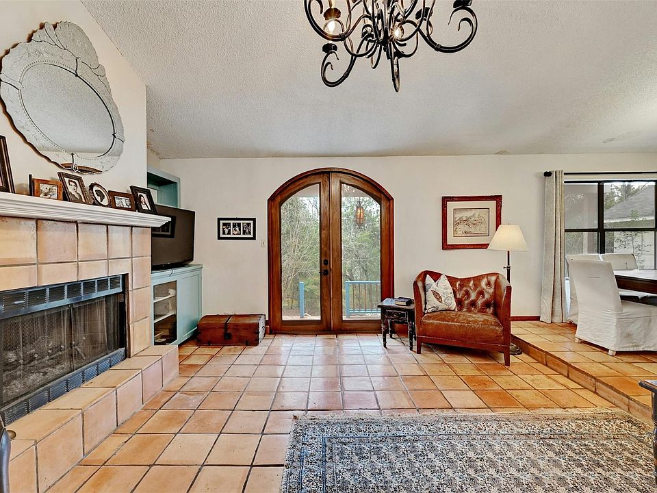 Gently sloping yardCovered back patioScenic hillsMature shade treesCustom entry doors