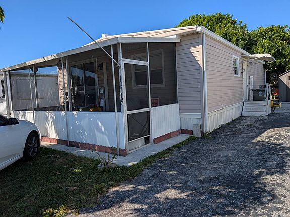 Discover this delightful 2-bedroom, 2-bath home that perfectly blends comfort, charm, and convenience. Step inside to an open floor plan filled with natural light, creating an inviting atmosphere throughout. The spacious master suite features a large bathroom for added comfort and privacy. A roomy kitchen offers plenty of space for cooking and entertaining, while the adjoining dining area is accented by an elegant chandelier. The home also includes an interior laundry area with washer and dryer, central A/C, and an additional mini-split system for energy-efficient cooling. Enjoy outdoor living on the screened patio or take advantage of the extra storage provided by the shed. The property is surrounded by mature fruit trees and equipped with window shutters. Parking is available for several vehicles, and the community offers fantastic amenities - including swimming pools, a clubhouse, playground, and basketball court. Located in an all-ages community close to shopping, dining, and daily conveniences, with quick access to I-95. A comfortable and inviting place to call home! Mobile home only. Lot lease $1080/month