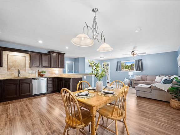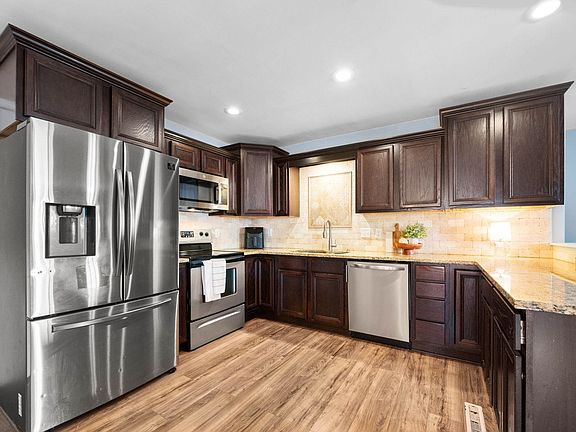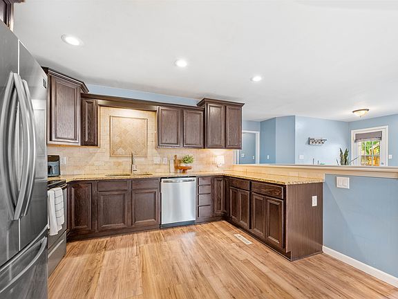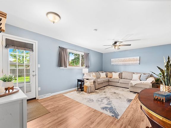 Welcome to this charming Derby home located at 107 S Lauber Lane with recent updates throughout, perfectly located within walking distance to the Derby Recreation Center, Derby Middle School, Panther Stadium, and baseball field. This home blends comfort, convenience, and modern finishes in a desirable neighborhood setting with mature trees. As you step inside, you’re greeted by foyer with coat closet, leading to a spacious living room with newer wood-grain flooring that flows seamlessly throughout the main living areas. The open-concept layout makes it easy to entertain, with the living room connecting to the dining area and kitchen. The kitchen has been thoughtfully updated and features stainless steel appliances including refrigerator, range, built in microwave, dishwasher, and garbage disposal, a pantry behind frosted glass doors, granite countertops, modern cabinetry, and plenty of prep space for everyday cooking or gatherings. The main level offers three bedrooms, including a primary suite with a private bathroom complete with tile flooring and a step-in shower. The hall bathroom serves the additional bedrooms and includes a tub/shower combo, a large vanity, and stylish tile finishes. The finished basement adds even more living space, with a large family room, recreation area, a third full bathroom with a shower, and a spacious storage room. There is also a bonus room currently used as a bedroom, which could easily be converted to a true bedroom with the addition of an egress window. Outdoors, you’ll love relaxing on the covered side patio or entertaining on the wood deck. The backyard is fully fenced for privacy and includes a storage shed for lawn tools and extras. This home offers space, function, and location all in one -just minutes from schools, parks, sports facilities, and everyday conveniences. Get ready to OWN the home you love!