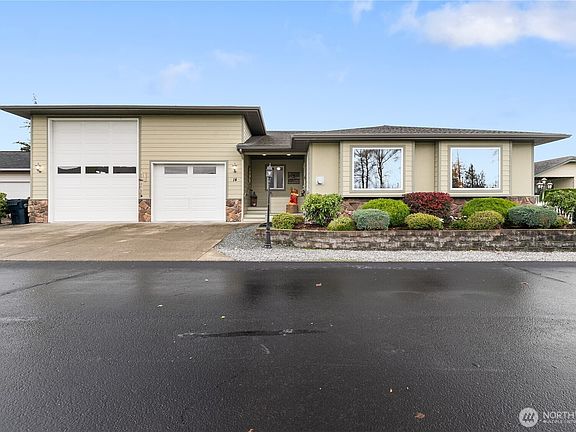Picture your ideal home... Quiet well-maintained 55+ neighborhood, beautifully maintained one-level home, adjoining park areas, beautiful view? Welcome to #14 Sumas River Estates, located in quiet and peaceful Nooksack! This home is immaculately kept with 2 bedrooms, 2 bathrooms, plus a den and family room. Well-designed living space, lots of natural light and stylish gas fireplace. The family room has a walk out covered deck. Wonderful kitchen with new high-end appliances included... Plus, this home features an attached 43-foot-deep RV garage with all hookups, heated shop space and huge 2nd vehicle parking area, or park multiple cars! Lots of possibilities in this 43 x 28 garage space...use your imagination...This is OUT of the flood zone!