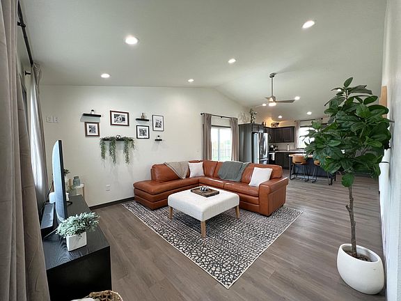 READY TO PLAN FOR YOUR FUTURE? Whether you're a first-time homebuyer or ready to downsize to one-level living, this stylish 3-Bedroom, 2-Bath home built in 2021 is the perfect fit! The open layout features modern finishes that will appeal to everyone, including a bright Kitchen, spacious Living Area, Vaulted Ceiling, and a comfortable Primary Suite with a Walk-in Closet and Private Bath. All Appliances stay—including Washer and Dryer—making this truly move-in ready. Outside, enjoy the large Fenced yard, NO back-yard neighbors, extra concrete for parking, a handy Storage Shed, Patio Area, and a two-stall attached Garage. With nearly 1,200 sq. ft. on one level and an affordable price of $279,900 this one is too good to pass up! START YOUR NEXT CHAPTER HERE!
