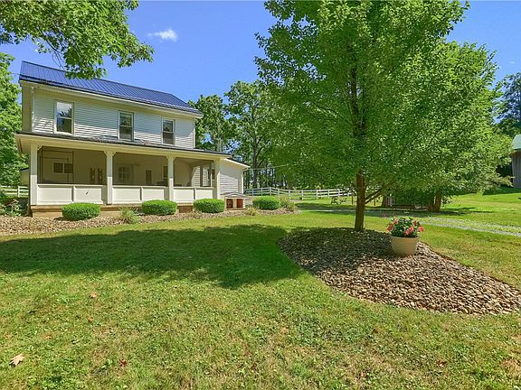 Elegantly remodeled 1871 Dutch Farmhouse nestled on 5.36-acre (w/additional 4.5 FLAT Acres leased from church). 3,137 sq ft property features: 4-bedrooms, 2-Full baths, an open kitchen with living room. Waterproof Engineered Laminate & Hard wood floors. Fabulous Open Living Kitchen & Living Room combination. Lots of Natural Sunlight in your Family Room. Watch your horses from the 4-season sunroom w/ natural gas vented fireplace, vaulted ceilings, heated inground pool, main level master bedroom, roomy screened-in front porch, hobby room/office. Eight Stall Equestrian facility: 76’x112’ indoor horse arena, Swing under the Barn overhang. Spring & Well water sources; electricity to each stall. White Vinyl Fencing & High T Fenced pastures. Miles of horse riding trails in horse-friendly community, going into public land trails. 16'X36' Inground Heated Swimming pool & Gazebo. Can be sold partially furnished. 2 miles from I-80 Exit 42, 15 miles from I-79. Next to the Butler County line.