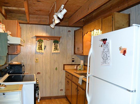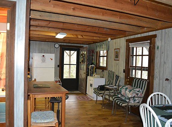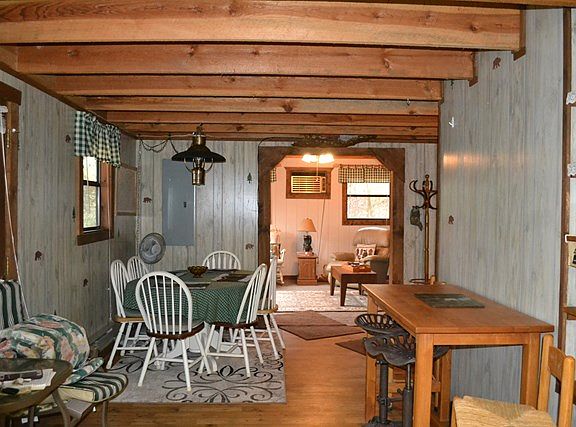 Adorable Cabin on 1.14 acres nestled in the North Georgia Mountains. What a great cabin to get away to and enjoy the beautiful mountains. With a little TLC and some updating you could easily make this cabin your own mountain escape for full time or vacation living. Beautiful wood beamed ceilings throughout main floor and laminate floors throughout the cabin, carpet in living room only. Kitchen, large dining area, full bath and living room make up the main floor and upstairs has the sleeping areas and a full bath. It has the perfect front and side covered rocking chair porches to enjoy the mountain air and peek a boo short range mountain views, also a large sun deck, single car attached carport with storage shed/workshop which houses the water heater, washer, dryer, and lots of shelving for your tools. Located in a private lake community with gazebos in a beautiful park like setting.