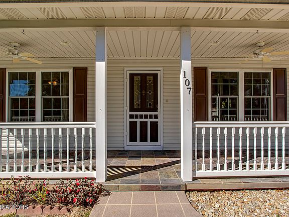 Welcome to 107 Skiatook Way! Nestled at the North End of Tellico Village, this well-maintained home offers a perfect blend of comfort, style, and natural beauty. With 4 bedrooms, 2.1 bathrooms, and an unfinished basement, the residence provides ample space for living and entertaining. You'll appreciate the privacy and serene wooded views, offering opportunities to observe local wildlife right outside your back door. Upon entering, you'll find a welcoming living room featuring a cozy gas fireplace, perfect for relaxation or gatherings. The kitchen is equipped with granite countertops and a pantry closet. The large dining room area offers beautiful views of the surrounding woods, creating a peaceful setting for meals. The generously sized master bedroom, conveniently situated on the main level, includes a substantial walk-in closet and a private master bathroom. An additional guest bedroom is also located on the main level, perfect for visitors or family. For added convenience, both the laundry room and the powder room are located on the main level. One of the highlights of this home is the enormous screened porch, ideal for relaxing while taking in the wooded views. The upper level consists of two additional guest bedrooms that provide plenty of space for family or visitors, a full bathroom, walk-in cedar closet, and a den or study which is a versatile space suitable for work, reading, or hobbies. The unfinished basement is plumbed for a full bathroom and features a workshop, a mechanical room with a tankless water heater, abundant storage, and a covered patio. The 3-car garage includes built-in cabinetry for additional storage and an epoxy floor for easy maintenance. The professionally maintained lawn is equipped with an irrigation system and filled with beautiful perennials.