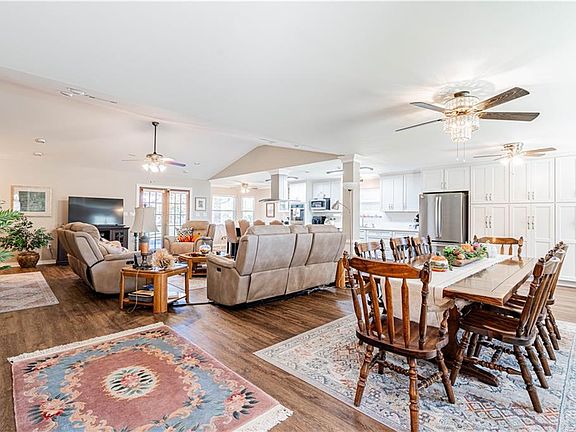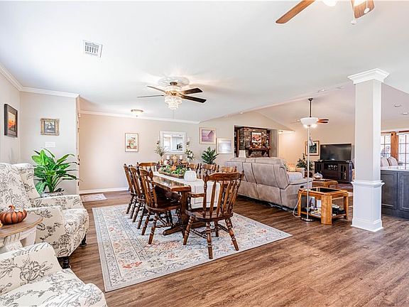Set in the established River Forest community, this home brings together refined style and the modern upgrades today’s buyers appreciate. With an open-floor concept layout and rich flooring throughout the main spaces, the home immediately delivers a sense of ease and flow. A wood-burning fireplace centers the living area, creating a warm anchor point for everyday living and effortless hosting.