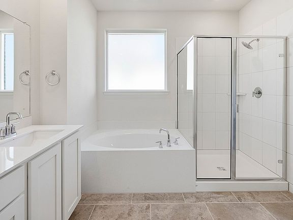 New Construction home by D. R. Horton Homes. Open and smart layout complimented by the features your buyers are requesting: gas fireplace, double sink vanity and tile shower surrounds, separate tub and shower, walk in pantry and covered back patio.