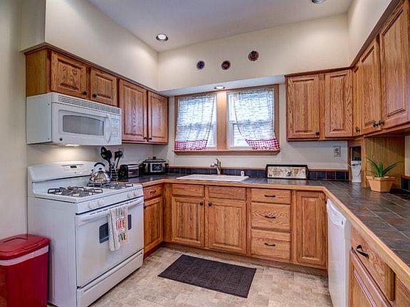 Beautiful 2 bedroom home, move in ready. New paint & carpet throughout. Many updates including eat in kitchen w/walkout to large covered deck, stone fireplace w/gas insert, high efficiency furnace & A/C, roof, vinyl siding, aluminum gutters, glass block & storage shed. Garage set up for workshop w/electric. Private backyard w/possible rear driveway off Scheben Drive for privacy & convenience.