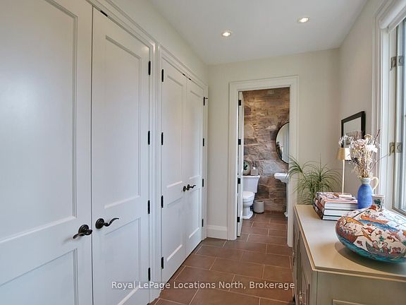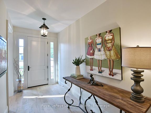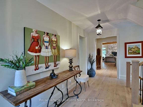 Experience exceptional craftsmanship & timeless elegance in this extraordinary custom-built stone residence, perfectly situated in the prestigious community of Lora Bay in The Blue Mountains. Known for its golf course, private beachfront & year-round recreational amenities, Lora Bay offers a lifestyle of leisure & sophistication, just minutes from boutique shops, fine dining & ski hills. From the moment you step into the grand foyer, you are welcomed by expansive sightlines to the impressive great room, where soaring cathedral ceilings & a magnificent floor-to-ceiling stone wood-burning fireplace set the tone for both refined entertaining & cozy gatherings. Flooded with natural light, the open-concept design seamlessly connects the principal living spaces, creating an inviting atmosphere that balances luxury with comfort. The custom-designed kitchen is truly one-of-a-kind, featuring a striking island with ample seating, bespoke cabinetry & premium finishes that will delight both chefs & entertainers alike. A spacious dining area overlooks the beautifully landscaped grounds, enhancing the homes natural connection to its serene surroundings. The main level primary suite provides a private retreat with generous proportions, a spa-inspired ensuite & thoughtfully designed details that elevate everyday living. Upstairs, 2 additional beds, office & a full bath offer comfort & privacy for family or guests. The fully finished lower level is complete with a bedroom, full bath & dressing room, a custom wine room & an expansive theatre/family room anchored by a cozy gas fireplace. Beyond the home, Lora Bay offers an unparalleled lifestyle. Residents enjoy access to golf, kayaking, walking trails, a members-only lodge & pristine beaches. Winter brings nearby skiing, snowshoeing & après-ski gatherings, making this community a true 4-season destination. With exceptional quality, thoughtful design & an unbeatable location, this property is more than a home, it is an experience!!