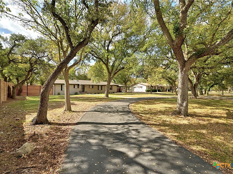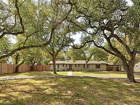 Classic 1960s ranch-style home on a spacious half-acre lot surrounded by mature trees and privacy fencing. The exterior features freshly painted brick, and a new roof in 2024. Step inside to enjoy a completely remodeled interior showcasing new kitchen cabinetry, countertops and stainless steel appliances. Both bathrooms have been tastefully renovated with new fixtures, vanities, tub and shower. Enjoy new flooring and fresh paint throughout, creating a light and inviting atmosphere. A versatile flex room (no closet) can easily serve as a third bedroom, office or studio space. Living areas offer one perfect for a media room; pre-wired for surround sound, and the main living room features a cozy wood-burning fireplace and original exposed ceiling beams that add warmth and charm. Recently replaced HVAC and one water heater. Outside you'll find a 2 car attached carport, 2 out-buildings, a firepit and plenty of decking for outdoor relaxing and entertaining!