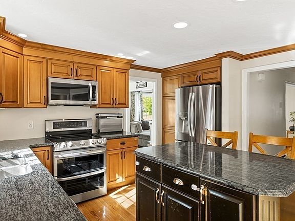 - Features: Ceiling Fan(s), Window(s) - Bay/Bow/Box, Dining Area, Countertops - Stone/Granite/Solid, Kitchen Island, Breakfast Bar / Nook, Exterior Access, Recessed Lighting, Slider, Stainless Steel Appliances