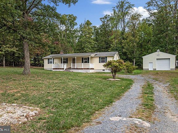 Affordable 3 bedroom, 2 full bath home with almost 1500sqft of finished space nicely positioned on a half-acre of flat land. This property also includes an oversized detached 2-car garage (1 overhead door). The large covered front porch provides a great place to relax. There is also a large rear deck that has two access points from the home. The primary bedroom with attached full bath and walk-in closet is located on one side of the home, and 2 other bedrooms are on the other side of the house. Home has a few cosmetic items that need attention. Seller is offering $5,000 credit to help address those items. Home is serviced by a private well and a 2-bedroom conventional septic system rated for 4-person occupancy, per Health Dept records. Septic was pumped 2 years ago and also inspected and pumped in 2017. Pool table in Family Room conveys. Propane tanks are leased. Appliances are being sold as-is.