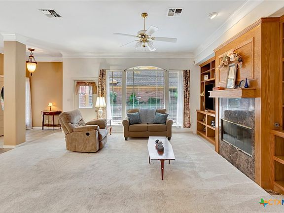 Welcome to this charming and well-maintained home in the highly sought-after Windcrest subdivision. This move-in-ready three-bedroom, two-bathroom property offers the perfect blend of comfort, convenience, and thoughtful design, making it a great fit for , or anyone looking for a low-maintenance lifestyle. Inside, you’ll find a spacious open-concept floor plan with high ceilings and beautiful crown molding. The inviting living room features a gas fireplace and flows seamlessly into the breakfast area and kitchen, creating a warm and welcoming space for everyday living or entertaining. The kitchen is equipped with a new dishwasher plenty of storage. The generous primary suite provides a peaceful retreat with a large walk-in closet, double vanities, in 2024 updated large walk-in shower that is handicap accessible. This home has been thoughtfully updated over the years to provide peace of mind for its next owner. Recent improvements include new garage door openers in 2024, new HVAC in 2019, a new water heater in 2021, and a new roof installed in 2018. Outside, you’ll find a beautifully landscaped yard with a low-maintenance design and a private backyard that features a covered patio and built-in watering system. It’s the perfect spot to relax or entertain guests. Conveniently located near schools, shopping, and dining, this home truly has it all. From its functional layout to its modern updates and prime location, 107 Tradewind is ready for its next chapter. Schedule your showing today.
