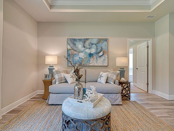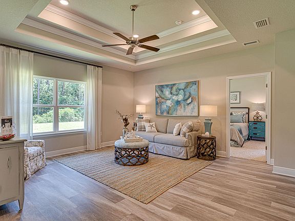 The Rhett floorplan is year after year, one of our most popular Cottage style plans! This Classic 1 story home has 1835 sq feet with 4 bedrooms and 2 full bathrooms. Living space is optimized with an open concept by providing an owner’s suite at the rear of the home with TONS of privacy. A modern kitchen provides you with granite on the countertops and an island that seamlessly integrates with the dining area and great room. The owner’s suite is filled with natural light from large windows creating an inviting, spacious retreat. Featuring a large walk-in closet and an expansive bathroom with a 5ft shower alongside a large soaking tub and dual vanities. You may never want to leave the room! The back porch is covered and offers perfect shade to enjoy the Florida weather. All homes come equipped with our Smart Home package and a one-year builder's warranty. $5000 towards closing costs with our preferred lender. ***Pictures, photographs, colors, features, and sizes are for illustration purposes only and will vary from the homes as built.***