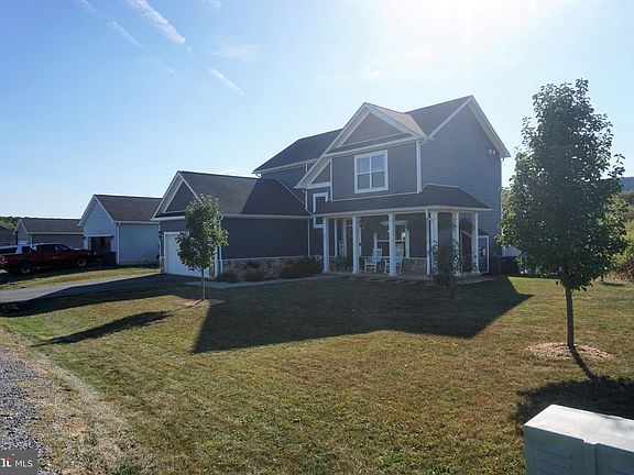 Beautiful Arts & Crafts with wrap around front porch & real stone waters table- 3 levels with 4 bedrooms/ 3.5 baths in the Butlers Bridge Community- Built in 2020 - This home offers 3 finished levels- Open floorplan with spacious great room with cozy propane/gas fireplace, formal dining room with tray ceiling & Designer Shaker kitchen with oversized 8 x 4 granite island, stainless steel appliances, 2 piece crown molding, two tone paint, main level LVP flooring, Hardwood steps to upper level, Upper level features 3 bedrooms-Master with tray ceiling & large walk in closet, Master with ensuite luxury bath with dual sink vanity, 4 x 4 oversized tile shower with separate handheld and regular shower head, separate soaking tub, Lower level is fully finished with 4th bedroom, rec room full bath ,den, & areaway entrance. Rear yard is fully fenced with a white vinyl privacy fence & stamped concrete large patio. This home features a enrgy efficient Rianni Propane Tankless Water heater & 2 HVAC systems! Hedgesville School DIstrict! ALL THIS NESTLED AGAINST THE ORCHARDS & NORTH MOUNTAIN YET CONVENIENTLY LOCATED MINUTES TO 81 AT EXIT 14 DRY RUN ROAD.