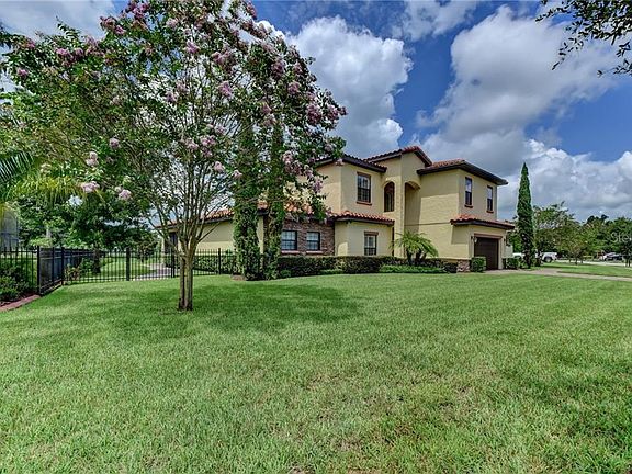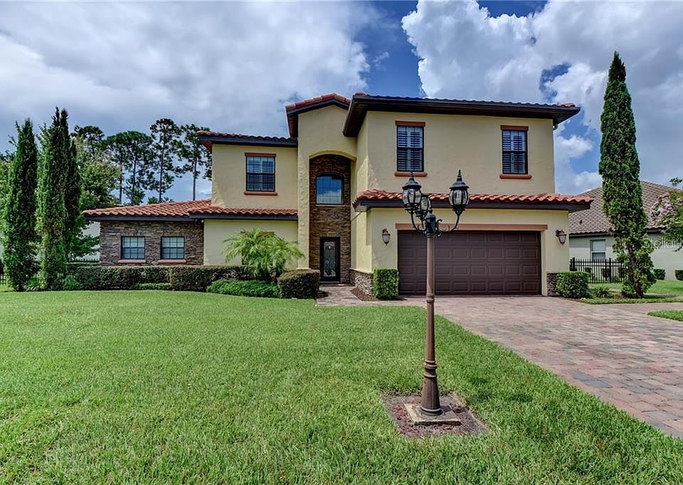Come see this immaculate Mediterranean style home in the beautiful riverfront community of Riviera Bella! This home offers 6 bedrooms, 3.5 bathrooms with an office, large bonus room and loft upstairs. The garage is equipped with its own separate professional grade heating/cooling unit, that could be used as an indoor workshop perfect for escaping the Florida weather. Enjoy tranquil evenings in your screened lanai with a relaxing view of the pond. Riviera Bella offers a gated entrance with 24 hour monitoring, a beautiful clubhouse with a large pool, fitness area, private community boat dock for quick and easy access to the St. Johns River, picnic area, splash pad, playground and so much more! This home was custom built by the developer and was once used as a model home. This beautiful home has a ton of must see upgrades!! Located minutes away from the new Sunrail station and easy access to I-4. Call to schedule your showing today! **Buyer to verify all information and measurements
