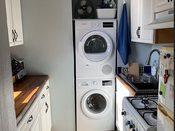 Abundance of natural lightExposed brick wallIn-unit washer and dryer