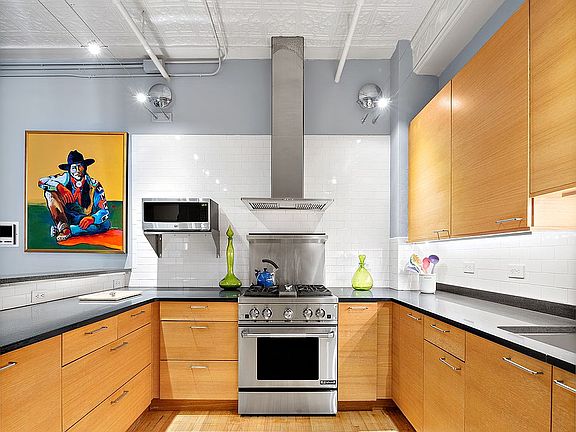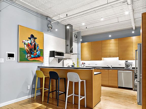 This expansive 1,130-square-foot loft is currently configured as a two-bedroom and features an immaculately designed kitchen with a Jenn-Air refrigerator and Bosch stainless steel appliances, including a built-in microwave, dishwasher, and in-unit washer/dryer. Ideal for art enthusiasts, the residence is enhanced by gallery lighting, almost 11-foot ceilings, and a beautifully appointed bathroom, combining style and comfort in equal measure.