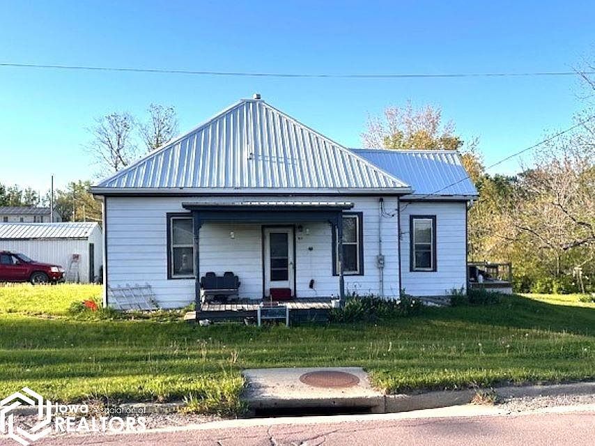 Enjoy affordable small-town living in this character-filled two-bedroom bungalow located in scenic Keokuk County. Nestled on a corner lot directly across from Hedrick’s City Park, this home offers both charm and convenience. Step inside to find a spacious living room, an eat-in kitchen, and a full bath, all with a welcoming, vintage feel. The range and refrigerator are negotiable, and a newer metal roof adds value and peace of mind. A detached one-car garage provides off-street parking or extra storage. Currently tenant-occupied, this home requires a minimum of 24 hours’ notice for showings. Whether you're looking for an investment property or a cozy place to call home, this bungalow is a great opportunity in a quiet Iowa town.