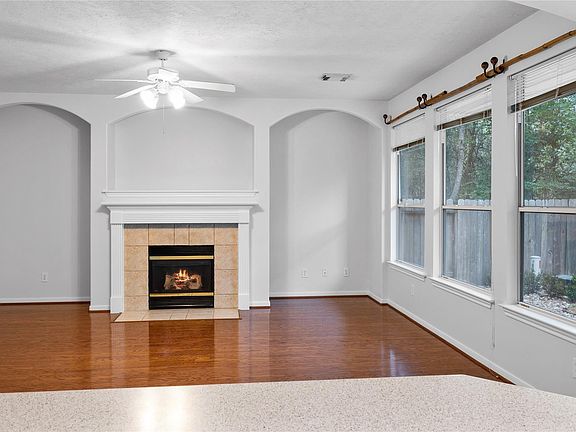 Available Immediately. Awesome Corner lot TH with easy access to I45 and shopping literally around the corner. Large bedrooms, plus a loft room. Real Hardwood floors, excellent condition, Corian countertops, refrigerator included. Covered back porch, private low-maintenance backyard, Gas log fireplace, highly acclaimed Woodlands Schools, and College Park High School. Easy access to I45 via FM 1488 or College Park. Neighbors only on one side.