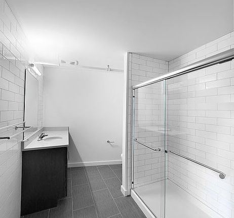 This apartment offers two generously sized bedrooms, providing a peaceful retreat for you and your loved ones. The master bedroom includes an en-suite bathroom, while an additional full bathroom and a half bathroom cater to your convenience. Each bathroom showcases modern fixtures and a clean aesthetic.