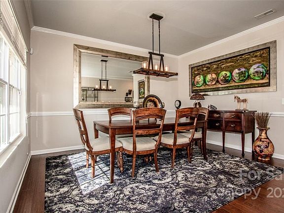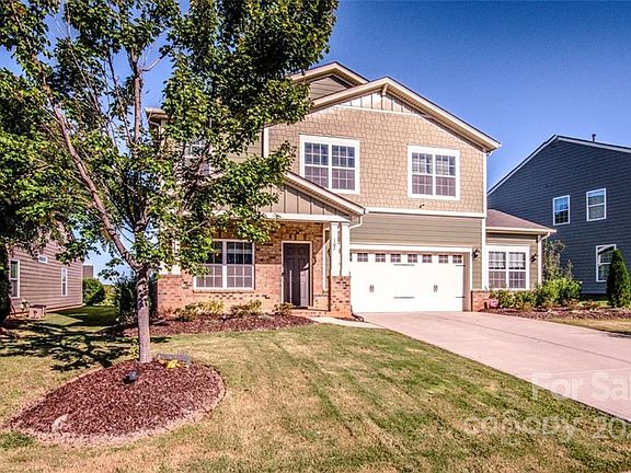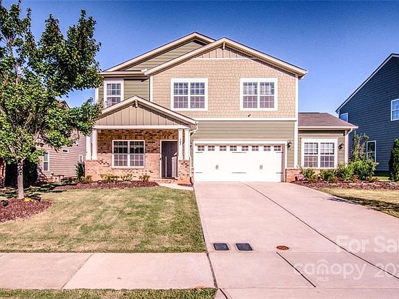 Motivated seller! Huge price decrease! Don't miss this Former Model Home. Enjoy the rocking chair porch and fully landscaped, fenced yard. Inside you are welcomed by beautiful hardwood floors, updated lighting and an open floor plan. The family room area has a cozy gas fireplace. The kitchen has granite countertop, glass cabinet and the island is great for entertaining. The computer niche also works great as a coffee or wine bar. Upstairs you will find a spacious laundry and large loft/landing area. The large primary suite with four other bedrooms. The fifth bedroom has French doors and would be perfect to an upstairs office space. The garage has an additional 10x20 extension with a half bath. Plus, recessed lighting, built-in cabinets and finished wall. This was formally the builder’s office space. This is not included in the home’s square footage. This home is a quick walk to the community pool. Mooresville Graded Schools and close to downtown Mooresville.