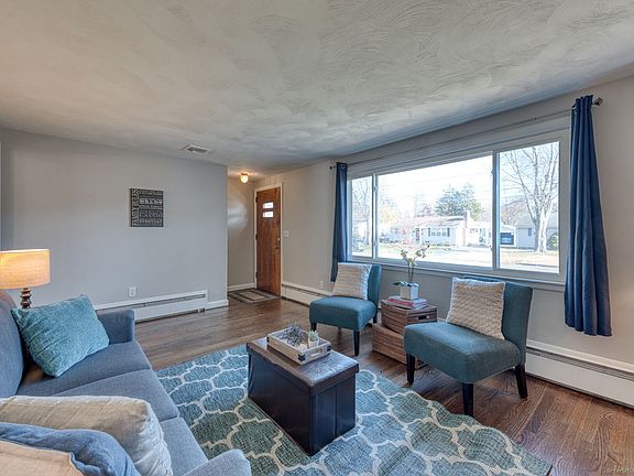 Simply great! Immaculately maintained 3-bed, 2-bath Ranch set on a beautifully level lot! This warm and inviting home offers an exceptional layout with multiple living spaces, perfect for both everyday comfort & entertaining. Step inside to find fresh paint throughout & gleaming newly refinished hardwood floors that enhance the home's bright & airy feel. The main living areas include: a formal living room with a bay window and cozy wood-burning fireplace, a spacious family room with new LVP flooring and beautiful built-in shelving, & a sunroom featuring brand-new carpet and direct access to the back yard. The well-appointed kitchen flows seamlessly into the dining room, making mealtime & gatherings effortless. The large primary suite offers privacy & convenience with new wall-to-wall carpet, a renovated full bathroom, & direct access to the backyard. Two additional bedrooms, another full bath and a dedicated main-floor laundry room complete the main level. The unfinished basement offers excellent storage space & exciting potential for future finishing to expand your living area. Additional highlights include Central Air, an attached 1-car garage, & numerous valuable updates: new windows (2021), natural gas line (2021), new boiler and hot water heater (2021), and a new shed (2021). Close to shopping, recreation, & with easy access to highways, this property offers the perfect blend of comfort, convenience, & peace of mind. Truly move-in ready, come see all it has to offer!