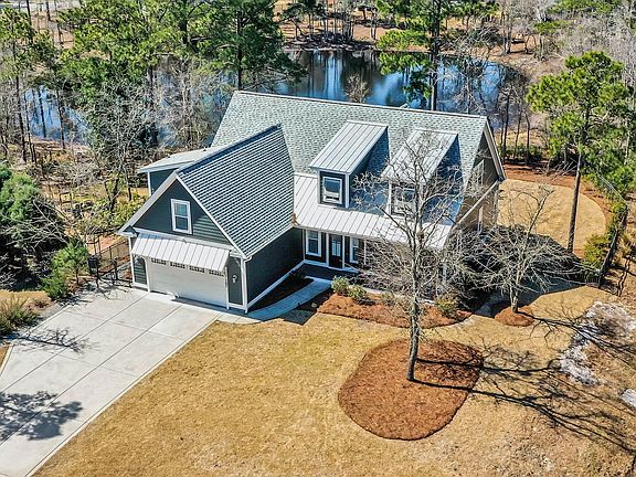 This custom home by Channel Marker Builders sits on a beautiful pond view home site in Crown Pointe. A stunning farmhouse design features 3 bedrooms, bonus room or 4th bedroom and 3.5 bathrooms. With water views from almost every room and custom details throughout. This uniquely designed home offers an open layout with vaulted two story ceiling foyer, home office, great room, gas fireplace, an elegant chef's kitchen with large island, eat in dining, and oversized laundry room. The large primary down, overlooks this amazing backyard, boast 2 walk in closets, split vanities, full tile shower and stand alone tub. Upstairs has two additional bedrooms, shared full bath and a large 21x12 bonus room with full bath. The bonus room can be a great guest room or man cave. The backyard is great for entertaining family and friends on the large screened in porch with vaulted ceilings, pergola, grilling station and a custom fire pit. The backyard enjoys lots of privacy with an easement, wood line and pond views. Crown Pointe has a great community pool, sidewalks, day dock to Virginia Creek, and clubhouse! This great community is close to Sloop Point Boat ramp, Wilmington, Topsail Island and Jacksonville.