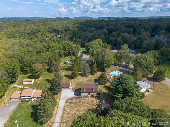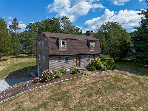 This 7 room gambrel colonial is the perfect mix of charm and updates! Stained cedar siding and new architectural roof! The interior boasts pegged hardwood flooring on both floors, one accent knotty pine wall with a fireplace in the front to back living room, the kitchen opens to the large dining room! Half bath and laundry area on the main level! Upstairs you'll find 3 generous sized bedrooms with two full bathrooms, the primary bath has been beautifully remodeled! Awesome enclosed porch off the back of the house with French doors to the patio and gorgeous acre of property! Two car detached garage with epoxy floor! Well water, city sewer and Wallingford electric!