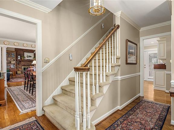 Beautiful Colonial in Historic Jamestown~ Well Loved & Meticulously Maintained~ 4 BR & 3 Baths~ Hardwood floors and Plantation Shutters throughout~ Gourmet Kitchen includes custom cabinetry, 6 foot Island/Storage & Designer Buffet with glass doors all with granite countertops & tile backsplash. SS appliances, gas cooktop & convection oven. Cozy FR features Vaulted Ceiling, Exposed Beams, Custom Paneling, Cabinets & Bookshelves with Gas log fireplace~ Main Level BR~ Updated Full ML bath~ Upstairs Primary Suite with 3 Walk in closets. Renovated Primary Bath with tiled separate shower, granite countertops, double sinks & vanity area~ TWO Spacious BR share a remodeled hall bath. Relax on the Sun Porch or Enjoy the Landscaped yard with perennials, stone wall border, Birdfeeders, Fountain Garden, Firepit, Wired Shed, Huge Deck & Porch w/Swing~ Side entry Double garage w/Storage~ Convenient to Jamestown's Boutique Shops, Restaurants, Library & Park~ Close to PTI Airport and Interstates