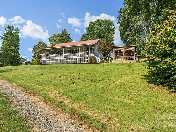 This picturesque 8.2-acre country retreat offers space, charm, and comfort at every turn. The beautifully maintained home features over 2,000 square feet of living space, comprising 3 bedrooms and 3 full bathrooms. Both downstairs bedrooms are ensuite, providing privacy and convenience—ideal for multi-generational living or guests. The spacious, open floor plan connects a large living room, a cozy sitting area with two gas-log fireplaces, and a stunning kitchen featuring a huge island, perfect for entertaining. Upstairs, you'll find another bedroom and a spacious bonus room—great as a playroom, media room, or potential 4th bedroom. Exit the home to an expansive covered front porch with sweeping views of the landscaped grounds, a red 2-story barn with a woodstove and electricity, and an immense yard. A back covered porch, concrete patio, and gazebo with a swing offer multiple outdoor gathering spaces. Tucked away among the trees, a custom-built treehouse adds a touch of magic—perfect for anyone. With two storage sheds (one with electricity), a well-maintained gravel road, and unmatched curb appeal, this property is a rare blend of rustic beauty and modern living. All within a drivable distance from Asheville, Morganton, Hickory, and Charlotte!