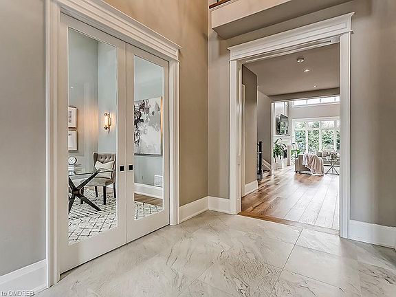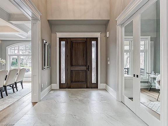 Stunning Custom Build in South Aldershot located on a quiet, Cul de Sac with over 7000 sq. ft. (total) of luxury living space. Great attention to detail w coffered ceilings, 20 ft. & 10 ft ceilings on main flr, 4 fireplaces including one outdoor, solid core doors, Wide plank white oak hardwood floors, 12 ft. center island in Gourmet Kitchen, craft room, golf simulator room & more. The fantastic floor plan is versatile to most styles of living offering 2 master bedrms w ensuites w heated flrs & walkin closets (one on main floor w direct access to covered porch), 5 bedrooms, 7 baths in total, nanny suite potential in Lower level w Sep. entrance. The main floor offers a sep. office, sep dining rm w servrey & built-in buffet, Large great rm. w 20ft. ceilings, flr to ceiling windows, open to Gourmet kitchen w direct access to covered porch, lrg pantry, mudroom w 2nd laundry. The 2nd flr. boasts an upstairs family rm open to below w gas F/P, 2nd Master & ensuite, 2nd bedrm w 3pc ensuite, 3rd bedrm w ensuite priviledges, wide plank oak hardwood flrs. The lower level has 2 walk up to back & side yard, spacious rec. rm w gas fireplace & built-in, craft rm., 5th bedroom w 3pc ensuite, storage, Golf simulator rm. & 3pc w built-in changing facility for pool. The private backyard oasis features covered porch w gas f/p w stone surround, inground salt water pool, built-in storage for patio furniture, prof. landscaped & siding on conservation land. This home is ONE OF A KIND. A must see & a rare offering. Walk to Downtown & the Lake. This one is not to be missed!