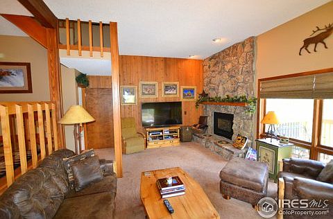 Terrific condo that boarders Rocky Mountain National Park. Take in the fabulous views from any of the 4 decks. Spacious living room with floor to ceiling gas fireplace. Remodeled kitchen with quartz counter-tops and stainless steel appliances. Huge master suite with second gas fireplace and plenty of room to stretch out. Finished rec room with attached 3/4 bath. Attached 2 car garage, patio, and wildlife viewing make this a perfect retreat. Short term rentals allowed.