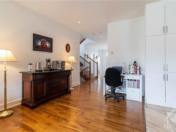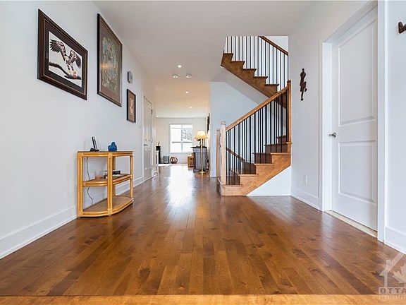 This exquisite custom-built home boasts 2,733 square feet of pure luxury, featuring 4 spacious bedrooms and 4 well-appointed bathrooms. Nestled on a prime corner lot in the coveted Morris Village, this property offers many amenities. Equipped with cutting-edge technology, including a smart home system with an alarm and camera setup. Step inside to discover a captivating open-concept main flr adorned with stunning marble-style tile flooring seamlessly transitioning into a rich hardwood flr. The gourmet kitchen has quartz countertops and luxury Monogram appliances, a culinary enthusiast's dream. Ascend the grand hardwood staircase to unveil the expansive primary bedroom, boasting a generous walk-in closet, a luxurious 5-piece ensuite, and 3 bedrooms; one that provides direct access to a charming balcony, which is perfect for savouring morning coffees and scenic views. In the basement, you'll be delighted to find a spacious entertainment room ideal for hosting movie nights.