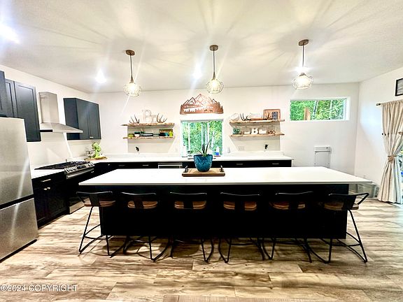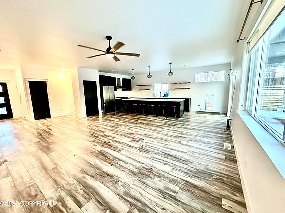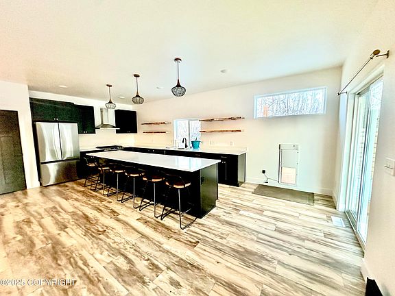 Modern and stylish with upgrades galore! Better than new! Neutral decor with an open concept floor plan, additional square footage, and an oversized quartz island for entertaining! Enjoy the convenience of move-in ready with the luxury of owning a home recently constructed in 2023. Perfect commute location to Wasilla, Palmer, or Anchorage!Centrally located in Wasilla, only 5 minutes to Fern St. and just 7 minutes to the Hwy at Seward Meridian, but outside of city limits where you can enjoy plenty of wildlife frequenting your doorstep. Enhancements include: -Extended length quartz island -Upgraded Luxury wood laminate flooring -Black cabinetry with gold handles -Black painted doors & black fixtures -Recessed lighting -Remote operated fans/lights in each room -Collar operated pet door -Garbage disposal -Water Softener/Osmosis system -Custom Birch shelving installed in kitchen -Stainless Steel modern appliances -Modern decor chandeliers/fixtures/mirrors -Concrete patio & pressure treated wood deck -Wooden fencing with black steel gate -Keyless garage entry -Wash station in the garage -Outdoor hookups for RV/Hot tub -Yard is extra graded & prepped for topsoil No HOA or CCRs Beautiful, clean, & easy to show!