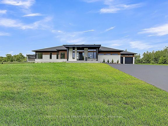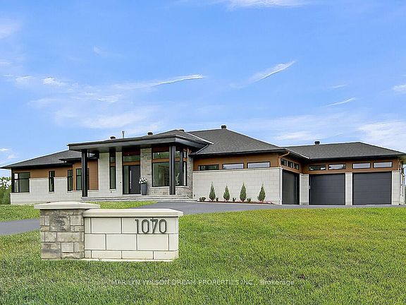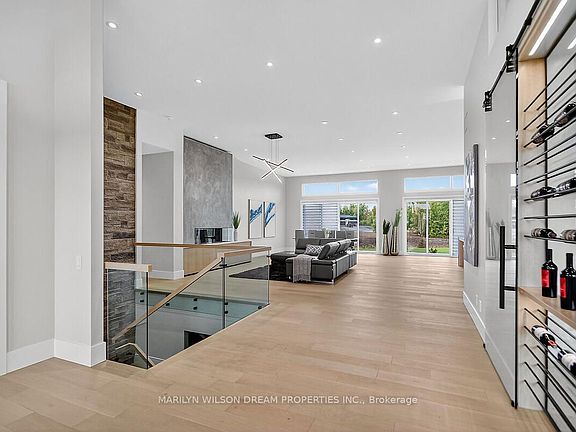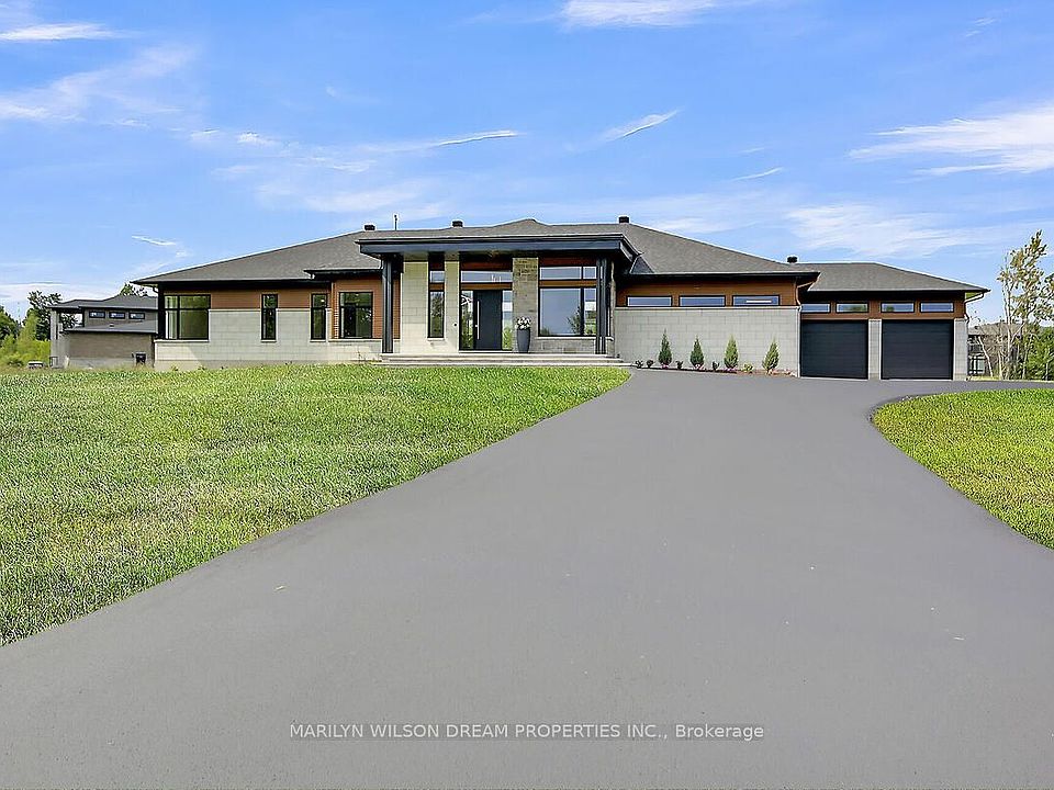 This custom designed bungalow offers both elegance and sophistication. Spectacular lot in estate subdivision with executive homes. Built by Patterson Homes, this residence has never been lived in! Attractive Dominion stone exterior and grand circular driveway. This breathtaking home is graced with magnificent scale, an abundance of natural light, high ceilings and an open floor plan. Whether you want privacy and relaxation or the perfect entertainment venue, this property is it! Step inside and the interior unfolds seamlessly with classic and contemporary design elements, offering a relaxed elegance. Flooring is 7" Vidar white oak hardwood and 30" x 30" porcelain tiles from Italy. This beautifully appointed home features a gourmet kitchen equipped with Fisher Paykel high-end appliances, a large quartz waterfall island, custom Louis L'artisan cabinetry and a butler's pantry. Flowing effortlessly into spacious living areas adorned with custom stone gas fireplace. Triple patio doors opening to the expansive hardwood deck, allowing for effortless indoor-outdoor entertaining. Elegant office with frameless glass sliding doors and custom wine display which can showcase 47 bottles. The primary suite boasts a spacious bedroom with patio doors to deck, a spa-like ensuite with a soaker tub, a walk-in double shower, dual vanities, heated floor and a custom walk-in closet. Two additional bedrooms with shared bath. Oversized mudroom with powder room and dog washing station. Solid maple floating staircase to lower level. High ceilings and in-floor radiant heating throughout. Spectacular 700 sq ft rec room with wet bar, fully sound insulated theatre, versatile bonus space perfect for fitness centre, 4th bedroom, full bath with sauna, powder room, ample storage and direct access from garage. Fully insulated massive 5 car garage features 14' ceilings and fast EV charger. Windows by Marlboro custom windows. Lutron lighting and networking wiring throughout. Tarion warranty included.
