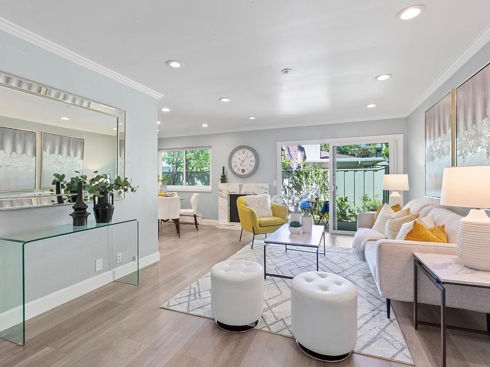 Welcome home to this spectacular, single level, end unit with no one above or below. Experience peaceful living in this 2 bed, 1.5 bath recently redone condo. Located in a quiet complex w/ lush greenery in the prestigious north Los Altos neighborhood. Open living room features gas fireplace, wide plank flooring, recessed lighting and a slider opening onto a large, peaceful, private and fenced patio. Perfect for gardening, simply relaxing or outside dining. Chef's kitchen complete with high end stainless appliances, storage and pantry. Spacious primary bedroom features large walk in closet with organizers. Additional features include covered parking space, bike storage, personal storage area and a newly remodeled community clubhouse and swimming pool.