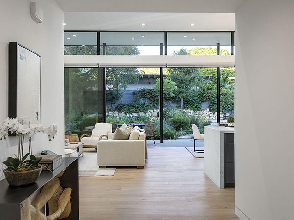 Discover indulgence and calm in this warm contemporary masterpiece. The very heart of the home boasts an open-concept living area bathed in natural light from the floor-to-ceiling windows and sliding glass doors. Soak in the beauty via the moving glass wall, providing a seamless transition to the professionally designed garden oasis with meandering paths and visual delight. Each of the four bedrooms is a personal sanctuary boasting en-suite baths providing comfort and privacy for family and visiting friends. The primary suite offers a spa-like retreat with organic textures and materials that invite you to relax and unwind including a luxurious soaking tub, dual vanity, and a sleek shower with level entry for convenience and style. Nestled on Oakside Way, located in Patterson Oaks, this community enjoys a private road and 2.6+/- acres of oak-studded open space land.