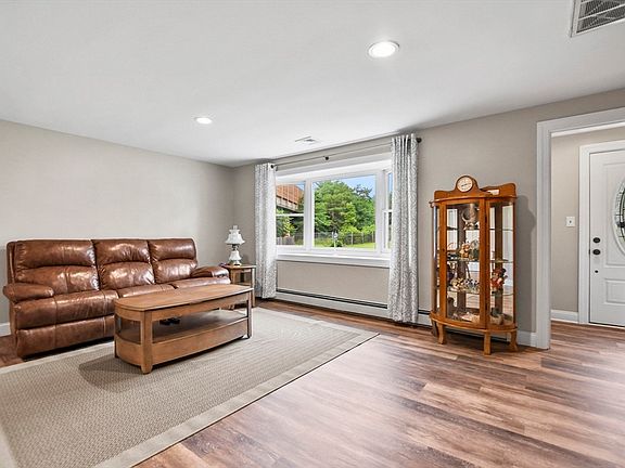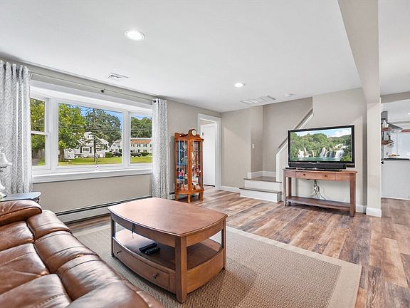 Welcome to your dream home on the banks of the Merrimack River! This charming 3-bed, 2-bath Cape offers the perfect blend of comfort & nature. Enjoy serene river views from your private dock or unwind around the hardscaped fire pit. Brand-new deck provides the perfect spot for outdoor entertaining. First floor boasts all-new laminate flooring, an updated kitchen with stainless steel appliances, a tile backsplash, and chic white cabinets. Bright and sunny living room opens to the dining room. A versatile first-floor bedroom offers flexibility as an office or den. The full bath with laundry adds convenience. Upstairs, you'll find two spacious bedrooms and an additional full bath. Finish the spacious basement to your liking. Bonus 2 car garage & storage shed! A commuter's dream enjoy easy access to Routes 93 & 113, shopping and restaurants! Don’t miss out on this waterfront gem!