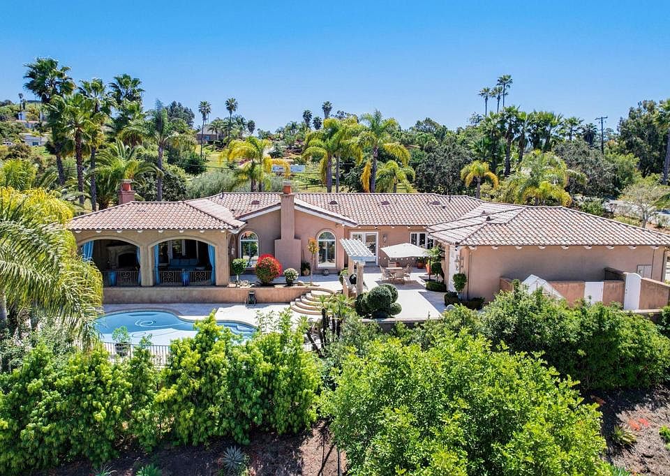 Welcome to 1070 Summit Trail, a luxurious single-story residence nestled within the serene landscape of Escondido. Boasting an expansive 3,750 square feet of living space, this stunning home offers both elegance and comfort, ideal for discerning homeowners seeking tranquility and modern amenities. Upon arrival, you'll be greeted by a sprawling 1-acre lot, meticulously landscaped to enhance the natural beauty of the surroundings. The property's lush greenery and manicured lawns provide a picturesque backdrop for outdoor activities and relaxation. Step inside to discover a thoughtfully designed floor plan that seamlessly blends spaciousness with functionality. The heart of the home is a welcoming living area adorned with high ceilings, large windows, and exquisite finishes, creating an inviting ambiance for gatherings or quiet evenings by the fireplace. The gourmet kitchen is a chef's dream, featuring top-of-the-line appliances, custom cabinetry, and ample counter space for meal preparation and just to the side is the temperature controlled 700 bottle wine cellar. A center island offers additional seating and serves as a focal point for entertaining guests while enjoying culinary delights. Adjacent to the kitchen, you'll find a versatile office space, perfect for remote work or creative pursuits. This room can easily be transformed to suit your needs, whether it be a home office, library, or cozy den. The residence boasts three generously sized bedrooms, each providing a tranquil retreat for rest and relaxation. The master suite is a true sanctuary, complete with a spa-like ensuite bathroom and large double walk in closets. Stepping outside, you'll discover a private oasis designed for outdoor living and entertainment. A sparkling pool offers a refreshing escape on warm summer days, while a spacious patio area provides plenty of room for al fresco dining and lounging. Surrounded by mature trees and lush landscaping, the backyard offers privacy and seclusion, creating the perfect setting for hosting gatherings or simply enjoying nature's beauty. Located in the prestigious community of Escondido, this exceptional property offers the perfect blend of luxury, comfort, and convenience. With its prime location near shopping, dining, and recreational amenities, as well as easy access to major highways and transportation, 1070 Summit Trail presents an unparalleled opportunity to embrace the quintessential California lifestyle. Don't miss your chance to call this exquisite residence home!