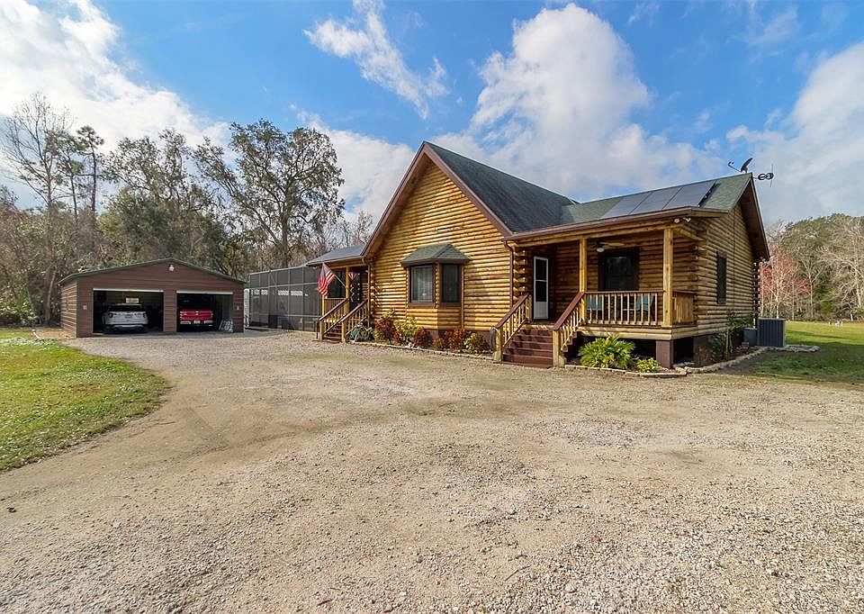 Imagine having over 5 acres of your own natural Florida landscape. These new construction homes are being built on less than 10k sq ft and you get 5.17. Sounds like a no brainer. Enjoy waking up each morning to deer in your back yard and the song birds singing to you while you sip your morning coffee on the back porch. Or sit on 1 of 2 front porches while the dogs run after the squirrels and small critters. Plenty of room for toys. The oversized 2 car garage is only a few years old and has its own electrical panel. Take a break from tinkering in the garage and hop in the in-ground, saltwater with hot tub. There is an outside shower to rinse off, amazing stone pavers and screen enclosure with no-see-um screen. Oh yea and with the price of eggs these days it may be time to convert that storage shed back to a chicken coup so these hens can start producing some breakfast. A secondary septic and RV hook up are present in case you want to entertain, AIR BNB or whatever your heart desires. Inside the 3 bedroom 2 bath home you cant help but notice the volume ceiling and giant living room. New luxury vinyl plank cascade through each and every room. Both downstairs bedrooms are not only amazing large (300 sq ft each) but have bathroom access making them en-suites. The loft upstairs is perfect for a game room, office or 3rd bedroom. The gathering place "the kitchen" is another grand space with gorgeous granite counter tops and tons of cabinets. Under the sink is the reverse osmosis system and the whole water system is brand new. Some other new features include: hotwater heater, HVAC, blown in insulation and $50k worth of solar. There is barely an energy bill. Your property is fully fenced with electric front entrance and secondary entrance to the rear of the property. Close to dining, shopping, great schools and of course only a few mins to the beach. Bring your toys and stay a while, but dont wait too long because this property is in high demand and wont last long.