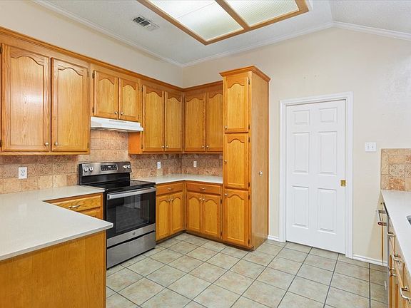 There is ample counter space and cabinetry with built in dividers for cook ware or trays.