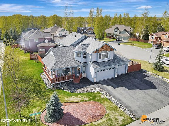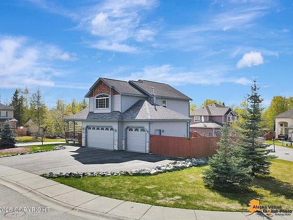 This meticulously maintained home sits on a large, fully fenced corner lot, featuring a gated area perfect for storing all your Alaskan toys that may not fit in the spacious three-car garage. Inside, you'll find a thoughtfully designed layout with flexible spaces that can be styled as formal or informal living areas. The well-appointed kitchen boasts GE Cafe appliances, perfect for the home chef.Relax in the large primary suite, complete with a luxurious Jacuzzi tub. Enjoy top-down, bottom-up blinds throughout the home, offering both privacy and natural light. The exterior is beautifully landscaped with a variety of vibrant annuals, and a charming covered front deck welcomes you home.