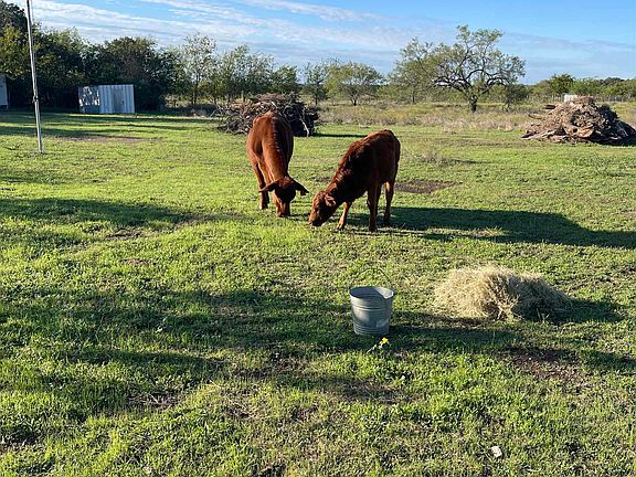 Peaceful , very private country living . Paved county road leads right to your entrance. Gorgeous old Oaks , Fenced and cross Fenced. Very nice 3600 sq ft Barndominium 1400 sq ft 2/2 living area . 1520 sq ft Barn area . A 3rd bedroom can be easily added. Two nice covered porches , 400 sq ft and a 280 sq ft . One storage or hay storage building ,192 sq ft. , a 280 sq ft dog kennel, 9x15 livestock shed with storage , livestock loading pen . Agricultural exempt with good grasses . Cow/calf pair valued at $2500 to convey with property. Great Well and low taxes , $1153 a year with exemptions. Over 500 ft of county road frontage . Ready to move in . Buyer must be pre-approved . Possible owner financing with 50% down payment , 3% interest , 10 year note . No Deed Restrictions. Agricultural exemption must remain on 9.005 acres for the life of the owner financed note. Some clean up still needed on the land.Property being sold as is.