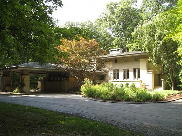 NATURE AND ARCHITECTURE harmonize in a symphonic tour de force! Influenced by the great Prairie Style homes of Frank Lloyd Wright, this custom designed and built home features a cruciform floorplan! Giving the illusion of cut granite blocks, the walls in the great hall conceal dual staircases and support two massive pediments. Art comes alive in the classic great room with towering ceilings, six oculus windows, and wood burning fireplace. A custom designed mirror takes center stage in a room that radiates joie de vie. A backlit mirror reflects the peaceful wooded surroundings from every angle in the elegant dining room. The true hub of the home, the recently remodeled kitchen/family room is truly a chef's dream! A commercial grade Wolf Challenger range, enormous island with built-in warming drawer and microwave oven are just some of the components that support this workhorse of a kitchen. A wood burning fireplace and ash wainscoting (harvested from the property) add warmth and character to the master bedroom. The chic and contemporary master bath features dual sinks, backlit mirrors, and shower with body jets. Overlooking the great room, the second floor office has two built-in desks and Murphy bed. Three additional bedrooms (one with private bath) complete the second floor. A built-in entertainment center, casual snack bar and desk make the lower level rec room the place to watch a movie, play games or just hang out. Exuding savior-faire, this exceptional home is an architectural triumph!