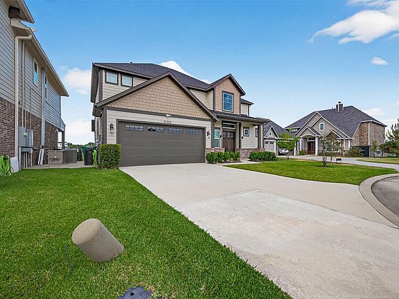 Stunning waterfront home in the gated Lake Breeze community on Lake Conroe! This 4-bedroom home (including 2 primary suites), 3.5 baths, and oversized 2-car garage offers luxury lakeside living at its finest. The open-concept layout flows from the living room with a floor-to-ceiling brick fireplace and custom mantel to a gourmet kitchen featuring ZLINE appliances, quartz countertops, soft-close cabinetry, pendant lighting, and breathtaking lake views. The main-level patio extends off the kitchen with three tiers for entertaining. Also on the main floor: a powder bath, mud area, utility room, and primary suite. Upstairs features two guest bedrooms with Jack & Jill bath, a reading nook, a second primary suite, and a flex space perfect for an office, gym, or hobby room. Enjoy the private boat dock with fans, ladder, and bumpers. Community amenities include a boat launch, pool, playground, and basketball court. Zoned to Willis ISD.