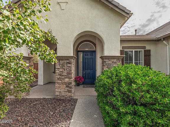 Discover exceptional single-story living in this stunning 4BR/3BA home in prestigious Damonte Ranch, featuring 2,371 sq ft on 0.28 acres with breathtaking Mount Rose views and no rear neighbors. The open floorplan with high ceilings creates an airy atmosphere, complemented by a cozy gas fireplace and fresh paint throughout. The primary suite includes a garden tub and direct patio access to a hot tub pad with hookups, plus a huge walk-in closet. The junior suite features its own remodeled bathroom, while all bedrooms offer large windows and natural light. Two large living areas and formal dining provide flexible entertaining spaces, enhanced by newer carpet with waterproof padding. Brand new furnace & AC Unit. The covered patio extends to a large stamped concrete area, perfect for outdoor living, with potential for a spectacular view deck showcasing Virginia foothills vistas. The oversized 3-car garage offers workshop potential, complemented by a durable durastone driveway and smaller recreational vehicle parking. Located on a quiet cul-de-sac, this home sits just 461 feet from highly-rated Damonte Ranch High School, near the new JWood Raw Elementary School, with convenient bus routes for middle schoolers. Despite its peaceful setting, residents enjoy proximity to Damonte Ranch Town Center, parks, bike trails, and easy access to South East Connector. The property offers a clean landscaping slate with no homeowners association restrictions, while Lake Tahoe recreation lies minutes away and Reno-Tahoe International Airport sits just 15 minutes from your door. This well-maintained home from original owners represents an unparalleled lifestyle opportunity combining mountain views, privacy, educational excellence, and convenient location in one of Reno's most desirable communities.